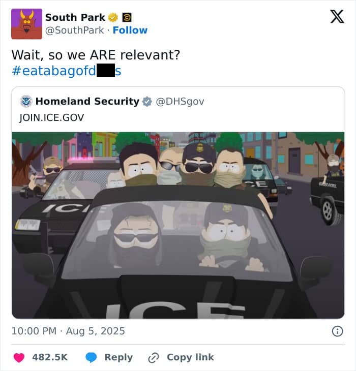 #52 South Park Tells Homeland Security To ‘Eat A Bag Of D***s’