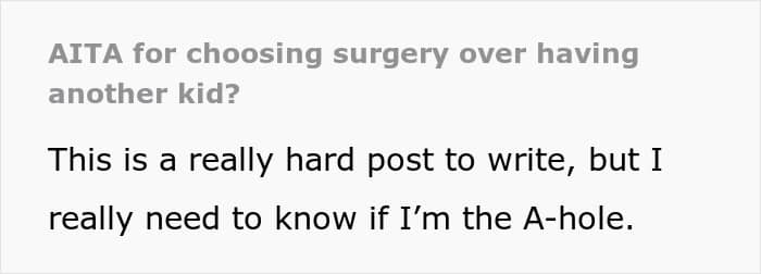 Do you feel like she was being selfish by choosing surgery over another baby or would you have done the same thing? Weigh in with your opinion in our comment section!