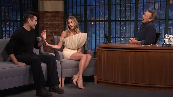 Meyers highlighted this when he said: “Colin, you’re an old friend of the show,” and the host addressed the Wolf of Wall Street alum, saying, “It’s your first time here, Margot, and we’re absolutely thrilled.”
