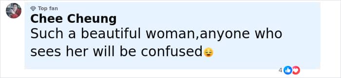 “Such a beautiful woman; anyone who sees her will be confused,” said one commenter