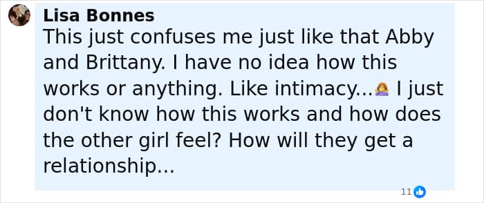 “Why do people think this is any of their business? These ladies have learned to deal with their situation and as long as it’s working for them, I don’t need to hear all the details,” wrote another.