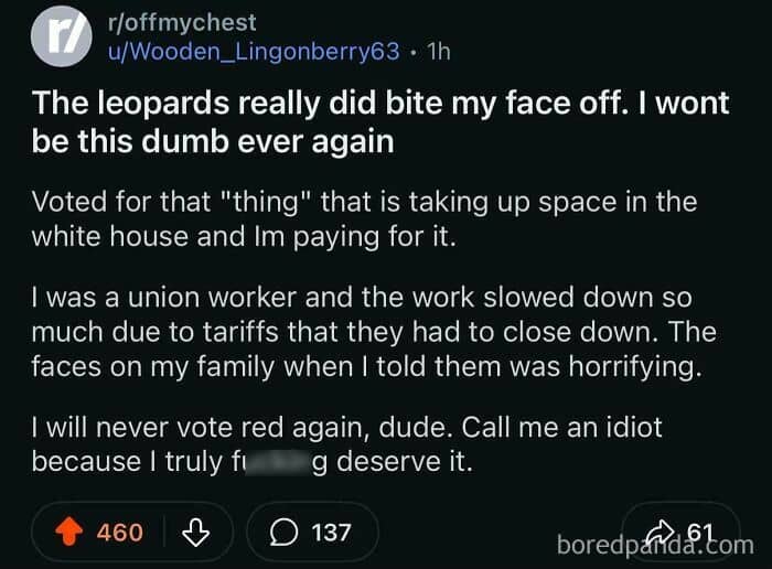 Even if you haven’t heard about it, the subreddit r/LeopardsAteMyFace should catch your attention. At first, because of its name, which comes as a reference to a viral tweet that read, “‘I never thought leopards would eat MY face,’ sobs [a] woman who voted for the Leopards Eating People’s Faces Party.”