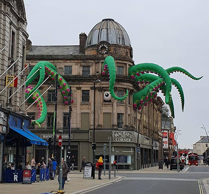 #28 City Of Manchester Celebrating Halloween With Large Inflatable Monsters On Buildings