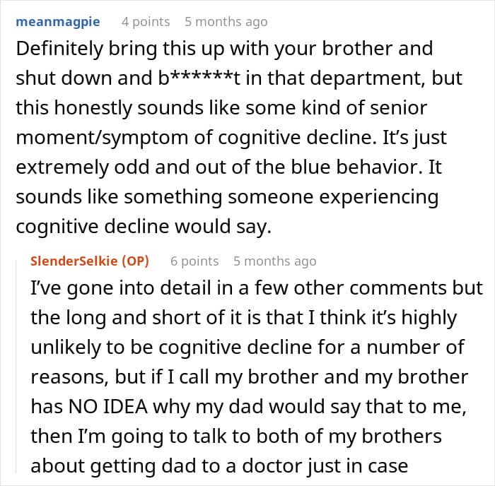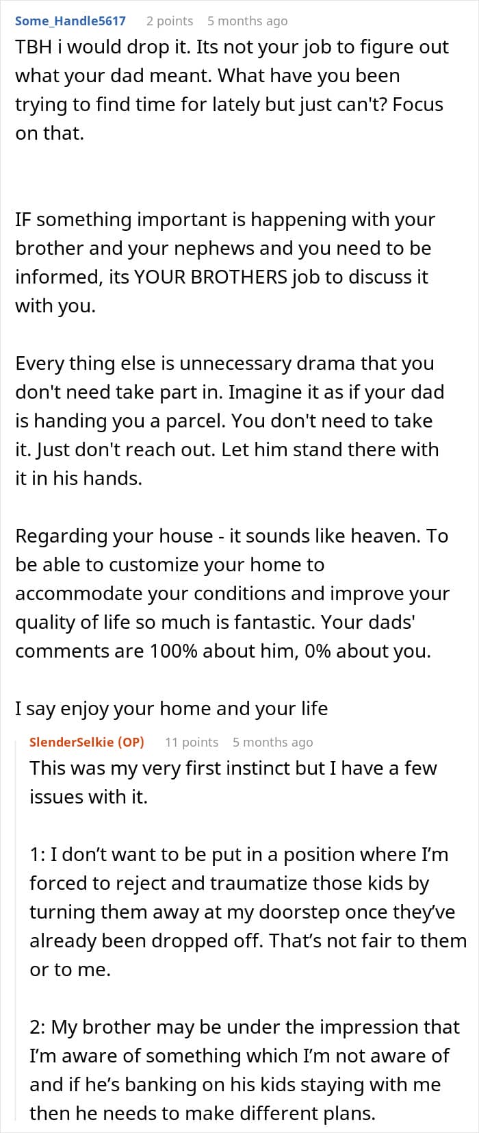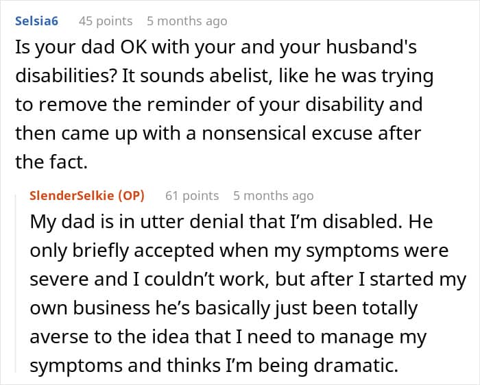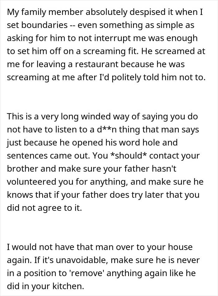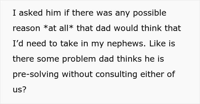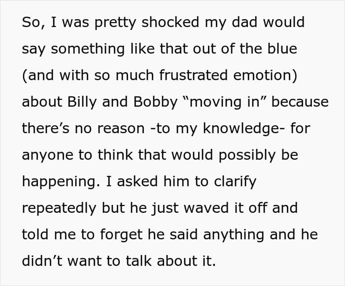 When you know a person for a long time, you get a sense of how they communicate. You understand why they chose one word instead of another and what emotion that subtle shift in tone is giving away. Our parents often fall into this category. However, Reddit user SlenderSelkie recently ended up in a situation with her father that she just couldn’t wrap her head around. While visiting her home, he not only started criticizing its renovations for being “too weird,” but also tried to see if he could tear them down. And when he was confronted about it, he dropped a dubious line about his grandsons—the woman’s nephews.
