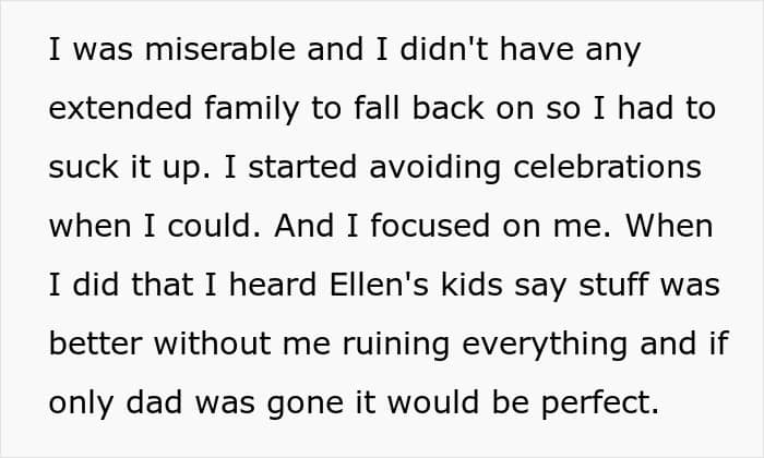 When the poster was just 3, his mom abandoned him, and when he was 5, his dad married Ellen, who had 5 kids, but none of them liked him