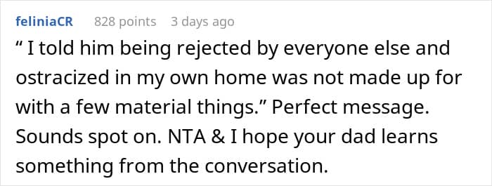 Not only did his stepsiblings treat him cruelly, but they also rubbed it in that they were doing it, and his dad tried to compensate for it by buying him things