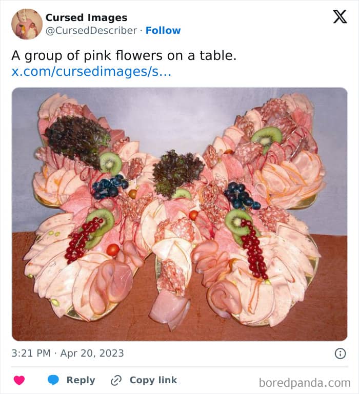 Cursed images are disturbing enough on their own. But when it’s futilely described by an AI computer, the weirdness goes through the roof, if you can even imagine it being possible.We couldn’t keep such strangeness all to ourselves after discovering the ‘Cursed Images’ X account, so we compiled a list of the best they have to offer to share it with you, our dear Pandas. If you’re ready, scroll down to receive your daily dose of bizarre, and don’t forget to upvote those images that are so wrong it should be illegal for them to exist. #1