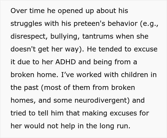 Then her now-fiancé came clean that his kid’s behavior was spiraling. His response? Chalking it all up to ADHD and trauma from a broken home. But OP, who’d actually worked with kids dealing with similar stuff, knew that boundaries weren’t optional here. And as they got closer to tying the knot, things got even messier.