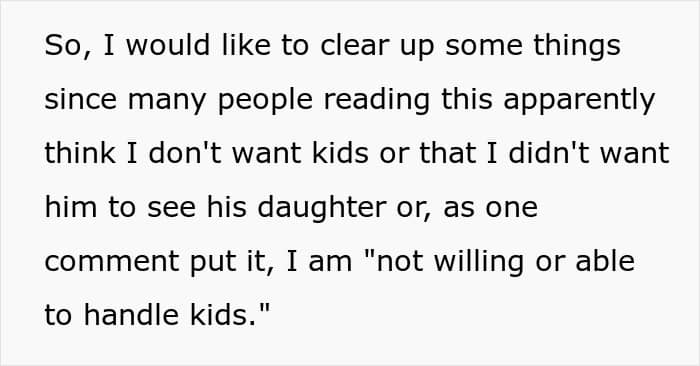 They ultimately ended up splitting up, and the woman swore off dating men with kids ever again, but still asked an online community if she was overreacting
