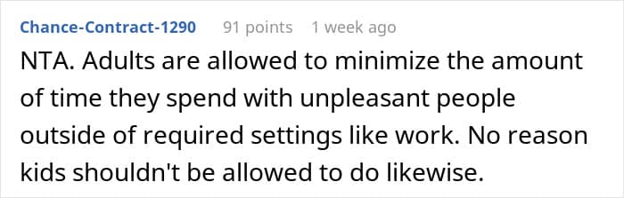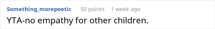 However, as some commenters noted, excluding a new kid is a surefire way to make sure they stay excluded. The parent in this story has the opportunity for a teaching moment and has decided to not take it. It is important to note that there are perhaps a multitude of details we are not aware of, but, at the same time, most folks who post these sorts of questions to the internet don’t really include lots of mitigating information about the other party.
