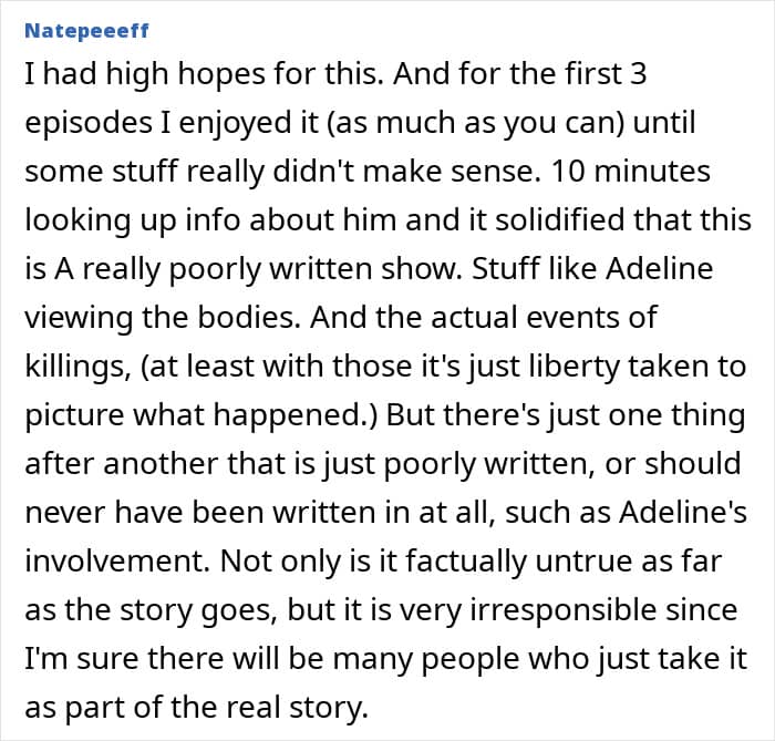 Netizens feel the series postures Ed Gein as a victim and is disrespectful to those whose lives he took