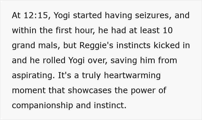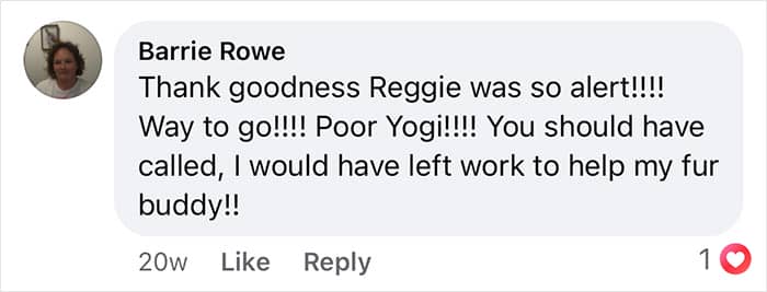 In the comments, readers had nothing but praise for the paw-fect hero, Reggie, and sent healing vibes to Yogi