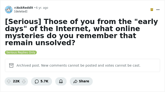 Now, you might think that some of these mysteries from the list are very disturbing. However, we have to understand that the online crowd wasverydifferent from what we’re used to now. While we mentioned before about how inclusive it was, not everyone knew how to use it.