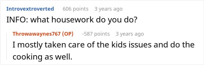 Others argued that, as a stay-at-home partner, household duties were primarily her responsibility