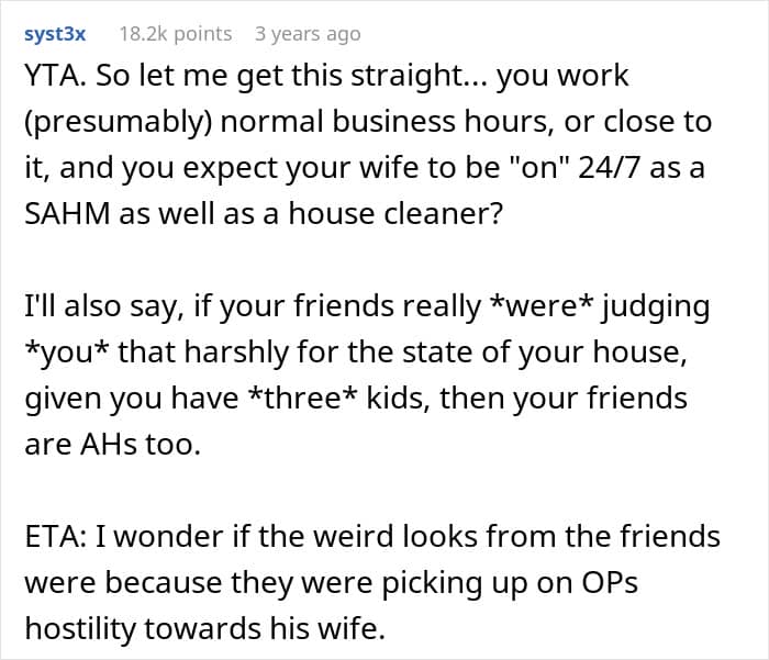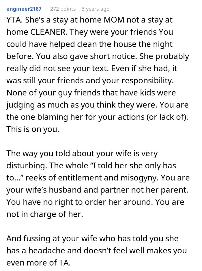 Perhaps that’s why a man turned to the internet for advice after he got upset with his stay-at-home wife over a messy house. Despite knowing she wasn’t feeling well, he blamed her for not cleaning before he brought friends over. His wife, however, pointed out that poor communication played a big role in the situation. Keep reading to find out how this domestic disagreement unfolded and what readers had to say.