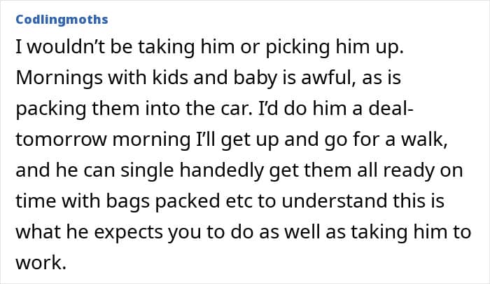 We would love to hear your thoughts on this situation in the comments below, pandas. Do you think this woman is being fair by refusing to drive her husband to and from work? Then, you can find another We article discussing similar relationship issues right here.