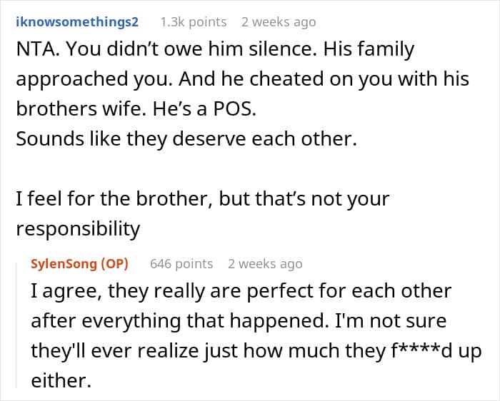 “They deserve each other”: most people agreed that the woman shouldn’t feel guilty
