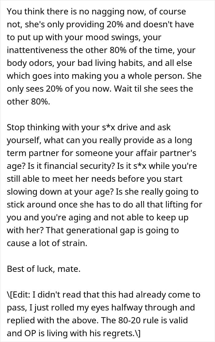 RELATED:A man decided to leave his wife of 20 years for a younger woman