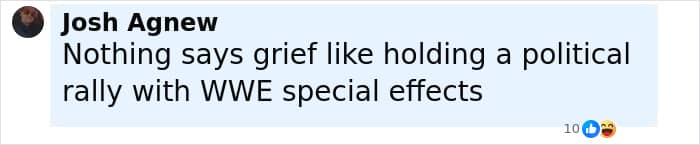 One netizen wrote: “Nothing says grief like holding a Political rally with WWE special effects”