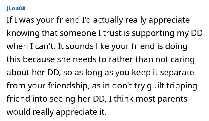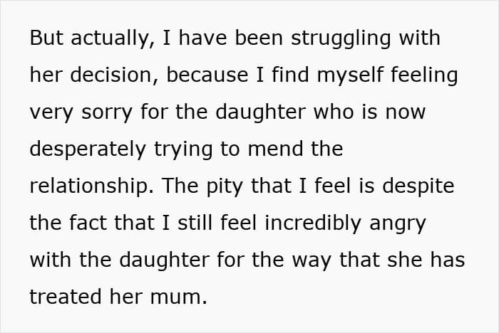Even though the poster knew why her friend had made the decision, she felt torn because she’d never do something like that to her own daughter
