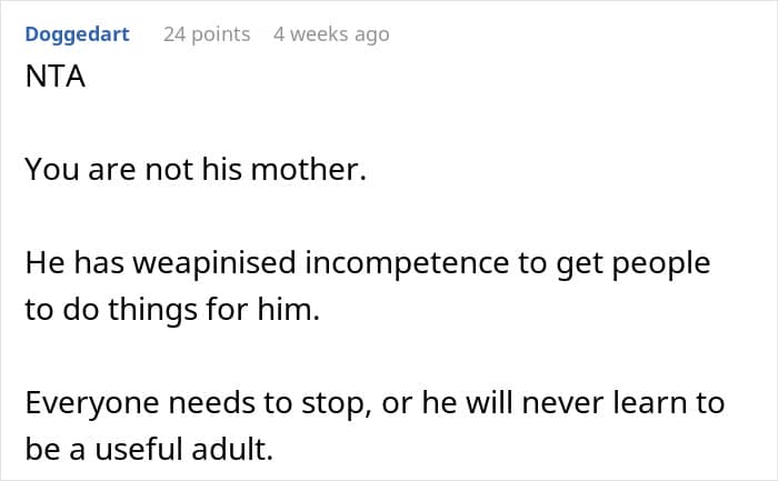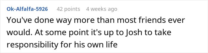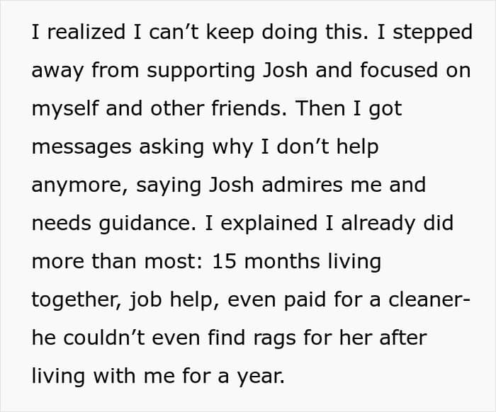Folks found Josh’s entitled behavior highly problematic, and claimed that the poster should have stopped enabling him long ago