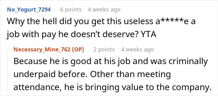 It’s unbelievable that after everything she has done, this is how he repaid her! She snapped back and said that his life would improve if he didn’t rely on strategic incompetence. Ever since, he has been avoiding her and even requested a new manager. Now, OP feels that she ruined things by mixing her personal life with her professional one.