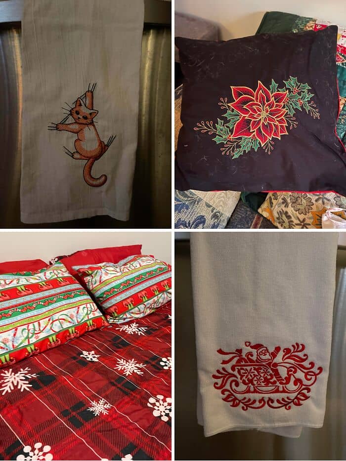 My mom and Dad live locally to me; this year, they went across the country to visit their grandbabies and my brother and SIL for Xmas. Mom arranged for someone to drop off an amazing handmade gift for me every day that they are away, since it is my first Xmas alone! Please excuse the animal hair. I have several animals.
