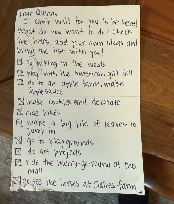 My in-laws live in Maryland, and we live in California. They are always so thoughtful. My MIL sends cards like this before we visit my eldest 4-year-old daughter. She’s amazing.