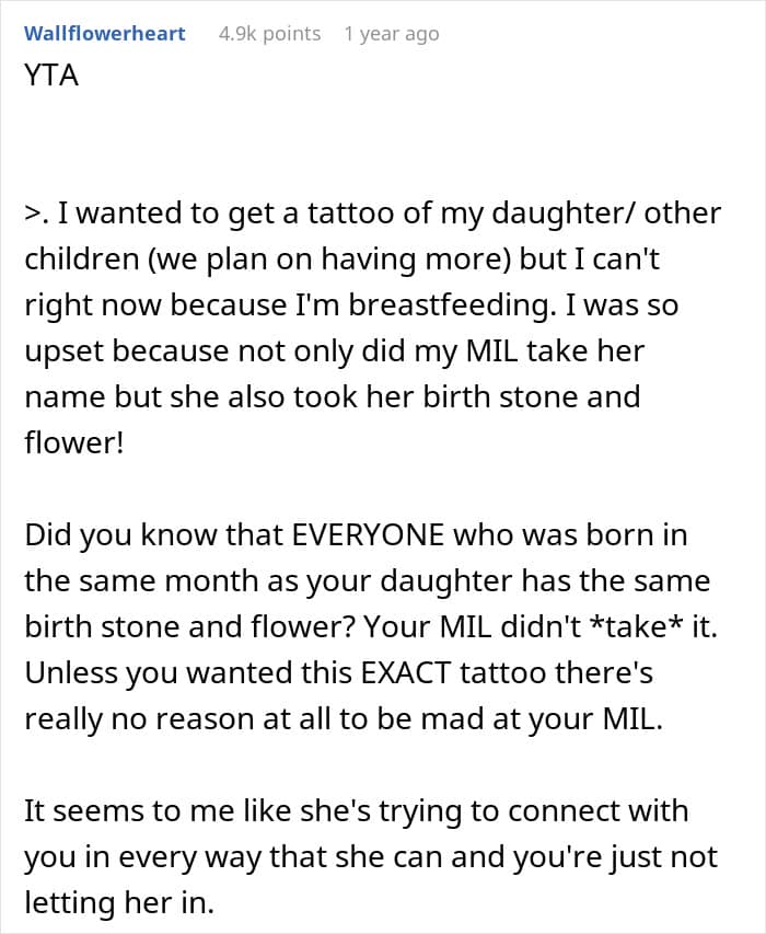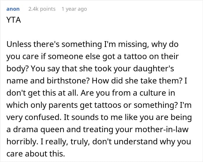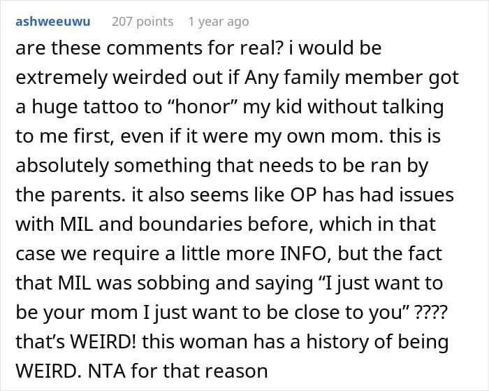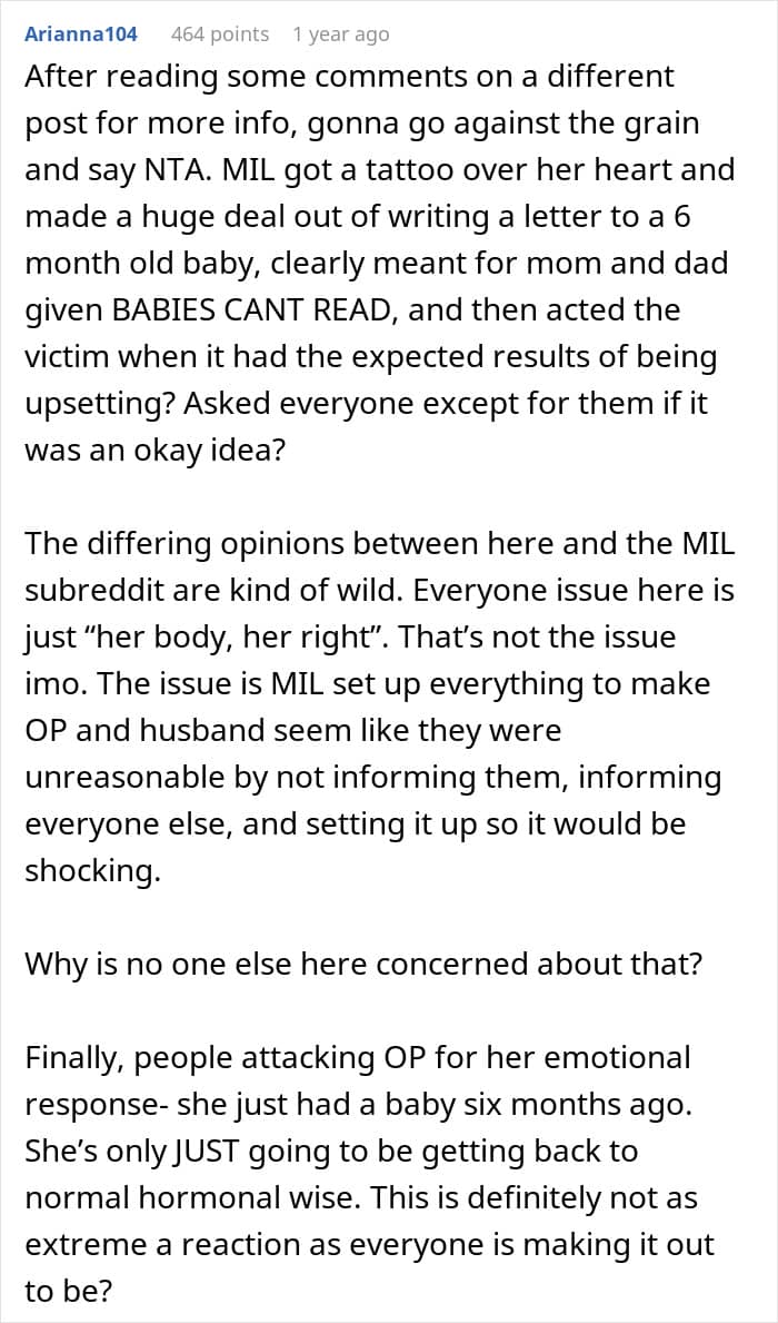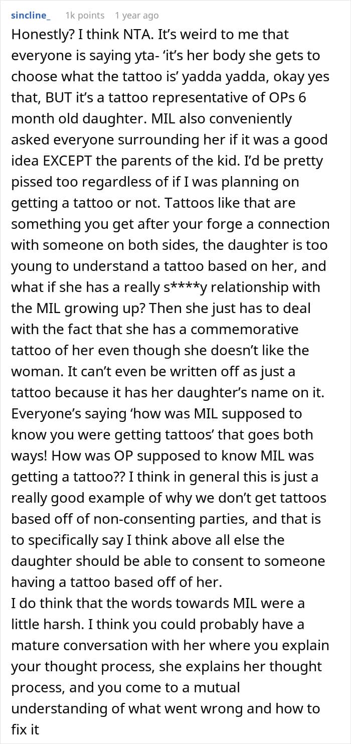 Below, you’ll find a story that was originally shared on Reddit by a woman who was frustrated with her mother-in-law’s new tattoo that featured her baby but was done without asking for permission first.