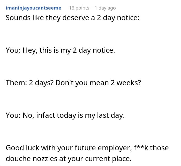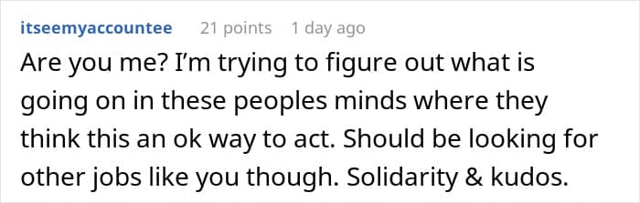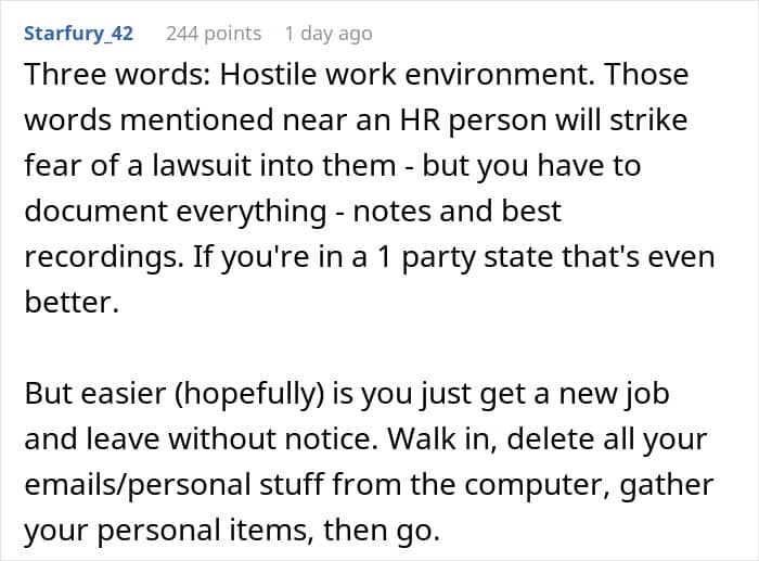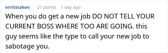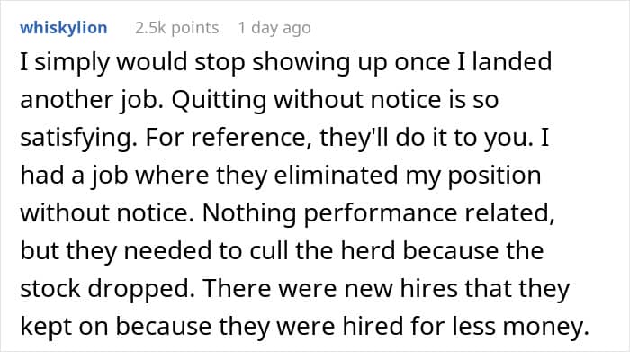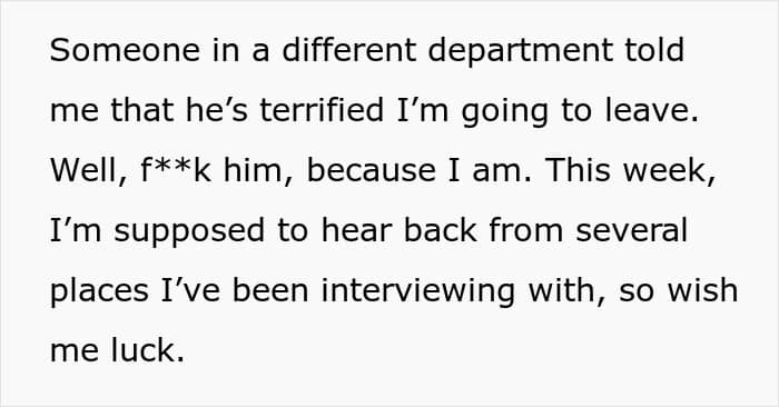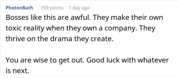 We reached out to the Redditor for an interview. OP explained that the post was a way to vent their frustration with the whole situation to a community they knew doesn’t tolerate toxicity at work.