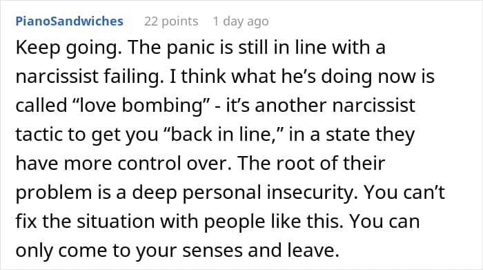 “Were the [community’s] insights helpful? I suppose they were; I learned that many people had gone through, or were going through, a similar situation, so it made me feel less alone,” elaborated OP. “I also got a few comments accusing my story as being fake which, to me, also helped me realize that what I was going through was so bad, the people thought it sounded fake.”