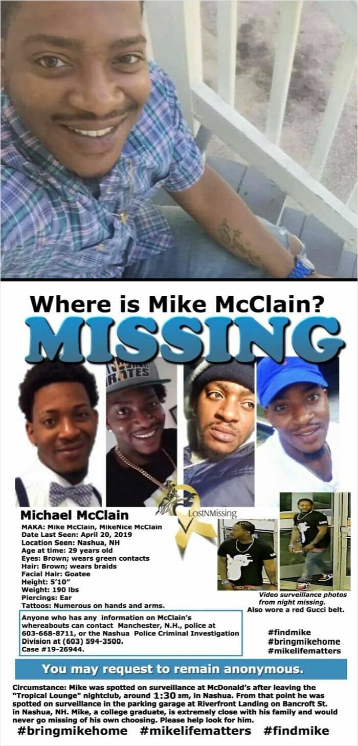Shortly after getting separated from his friends at a nightclub, Michael McClain made a panicked, out-of-breath phone call to his boss. In the call, he stated, “They’re after me. More than one,” before the line went dead. He also sent a series of nonsensical texts to his neighbor, one of which referenced a nearby street, but he was never seen or heard from again.