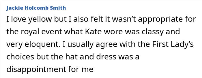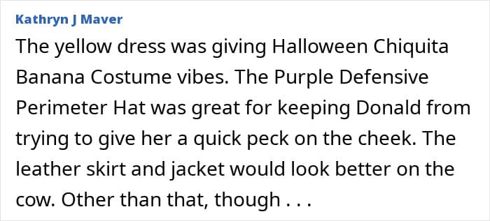 “Melania is a beautiful woman. Most everything she wears looks great but not a fan of that yellow dress,” another commenter stated.