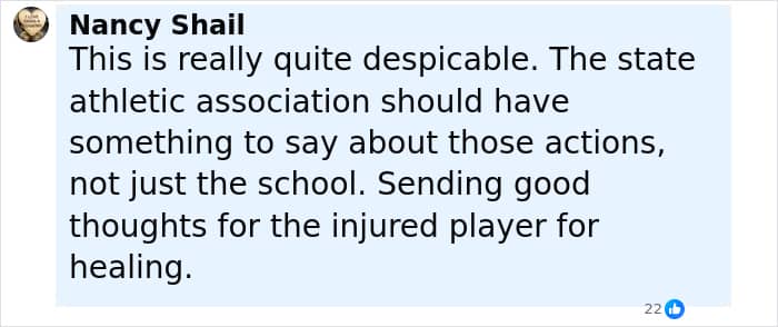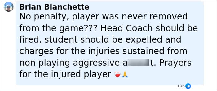“The offending player should be suspended from school, prosecuted, and the coach or coaches should be permanently suspended for suggesting and encouraging such action,” one commenter stated.