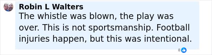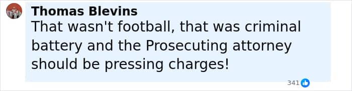 “How could punishment for the pancaking player be unclear? That was a criminal attack that would even be punished in the NFL,” another commenter wrote.