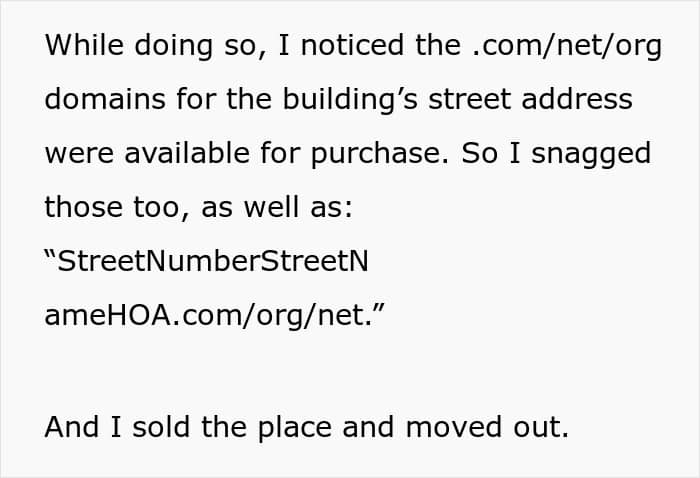 So one woman decided to finally get revenge on the HOA she loathed after moving out of her building