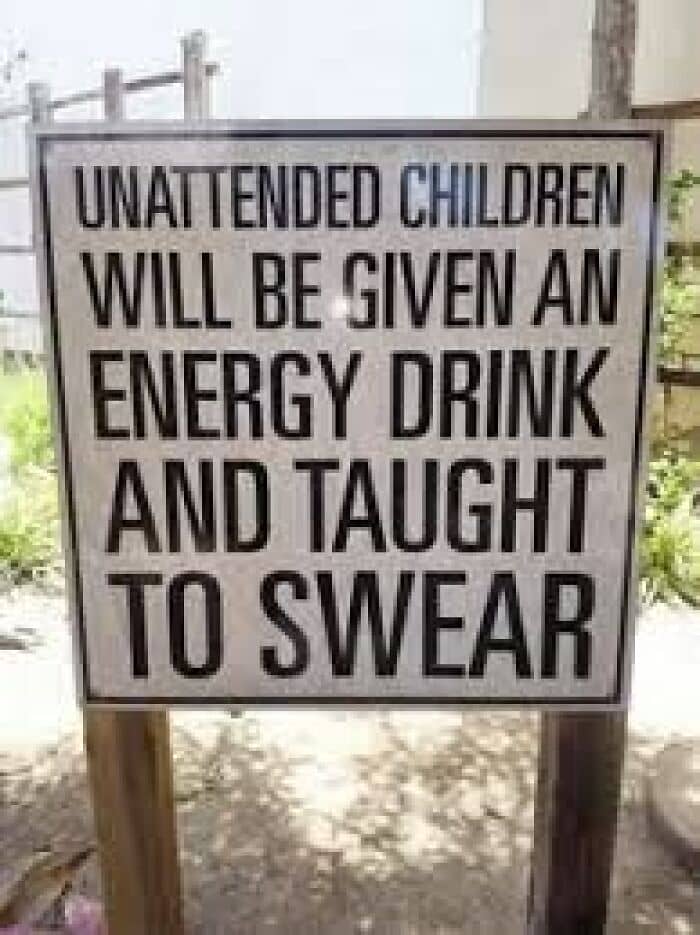 Then there are the signs that let our imagination run wild as we make up stories and fill in the blanks with our own funny fantasies of the people or animals that came before the message that just had to be made. Like the one that reads, “In light of recent events, hedgehogs will no longer be allowed in Room 146.” Say what? And why?