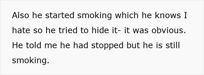 His inconsistent presence, swearing in front of their child, and new habits like smoking made her even more frustrated