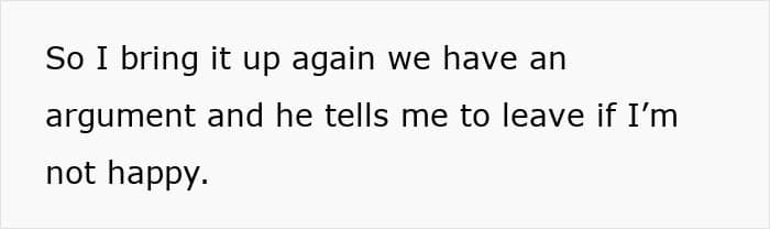 Whenever the OP would bring up his habits, he would tell her to leave if she was not happy and claim she was “always complaining” and “never happy,” even after providing a bigger house and earning more. Naturally, this has left her feeling unheard and exhausted.