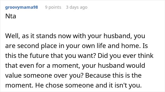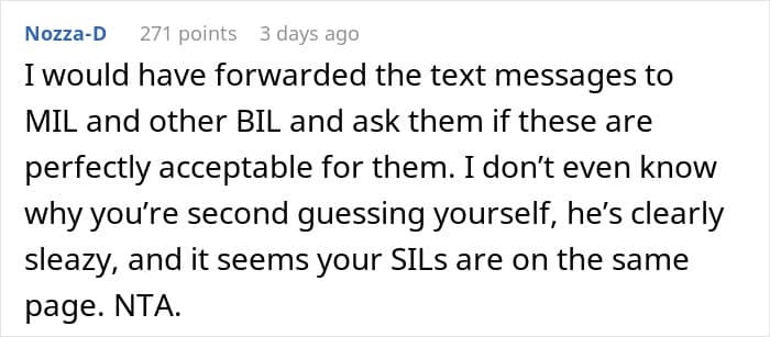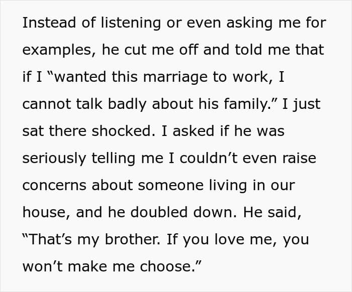 When a wife is uncomfortable around her in-laws, it is rarely about one comment or one visit. It is typically over time, through subtle moments of being ignored, criticized, or excluded. Those moments can leave her feeling like she’s not fully accepted, like she’s on trial or under judgment in her own marriage. In this story, the reality appears to be even worse, less “judgmental MIL” and more “creep brother.” If her husband ignores her feelings or won’t get in the middle, that sense of abandonment magnifies. Silence, in those instances, is betrayal. The very fact of failing to defend says much, suggesting that her comfort ranks second to getting along with his family.