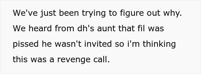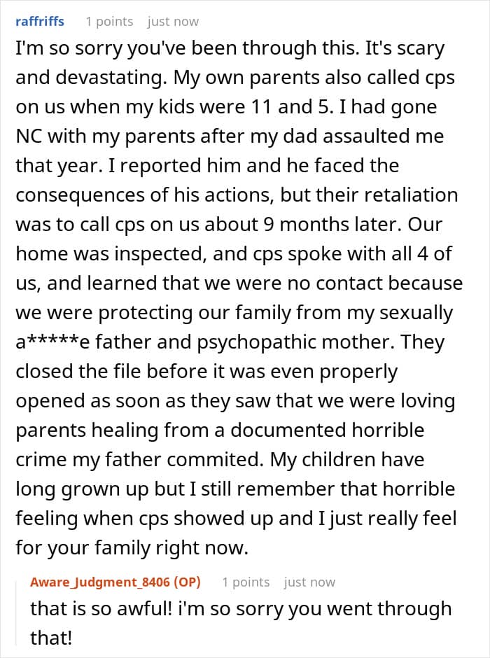 Well, they were immediately able to figure out that this was all a revenge plan hatched by the in-laws. Turns out, OP’s father-in-law was super pissed that they weren’t invited to see the baby with the other relatives. Ugh, the lengths to which some people go are just insane, right? Fortunately, CPS realized that the anonymous call was just a lie, so their case will be closed soon.