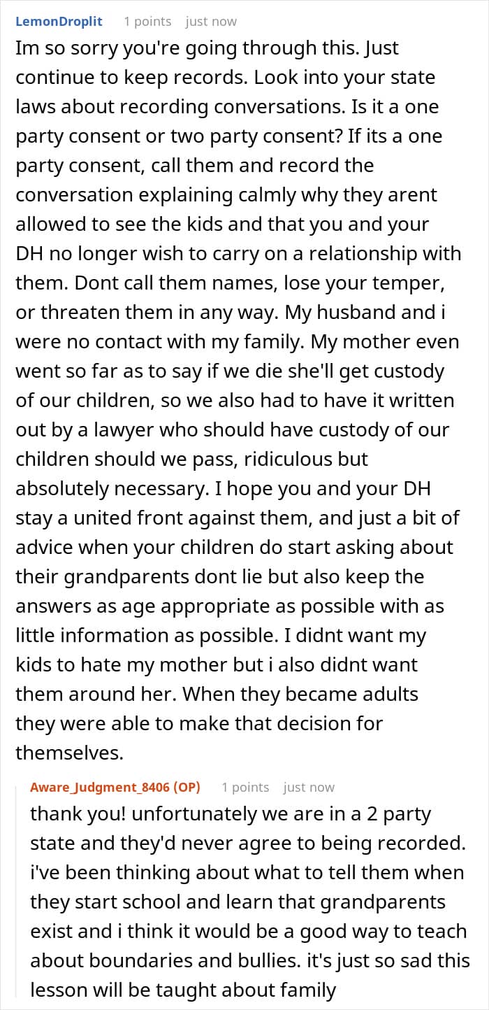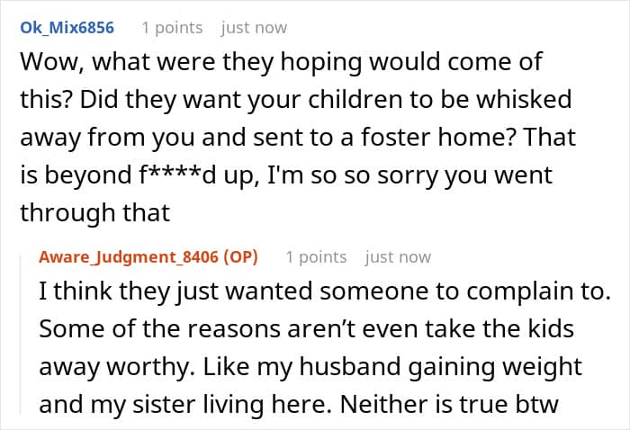 The poster completely agreed with them. She also told us that “Posting on Reddit helps to have people validate me so I don’t feel like I’m overreacting or going crazy.” I was just relieved to hear that their case will be closed soon. Some people commented that the couple should sue the in-laws for making such false allegations against them.