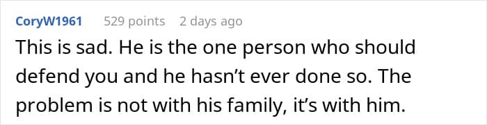 Commenters agreed that she doesn’t have an in-law problem; she has a husband problem