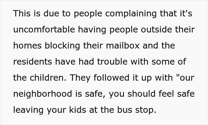 Out of the blue, the homeowners’ association banned parents from waiting at the bus stop with their kids and said it was due to people’s complaints
