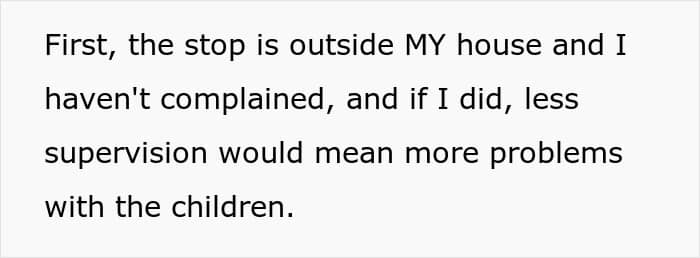 The poster confronted the association and brought up the fact that he was okay with parents and kids waiting at the stop, and that it was just outside his house