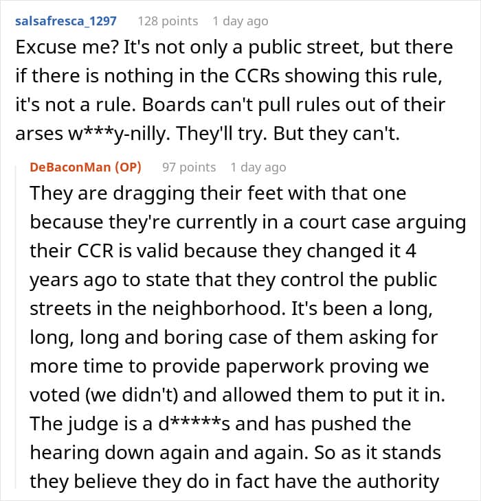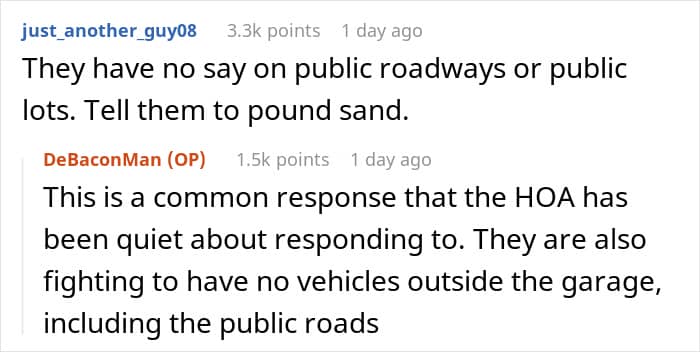 Many netizens also pointed out that the HOA can’t make rules about public streets and that their power only extends to the community. They could prohibit residents from parking on private streets, but cannot make such demands when it comes to public roadways. This shows just how much the man’s community association is overstepping.