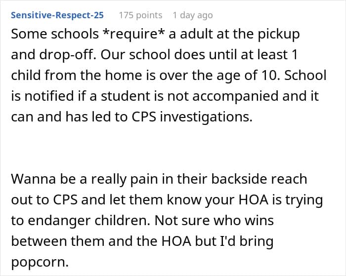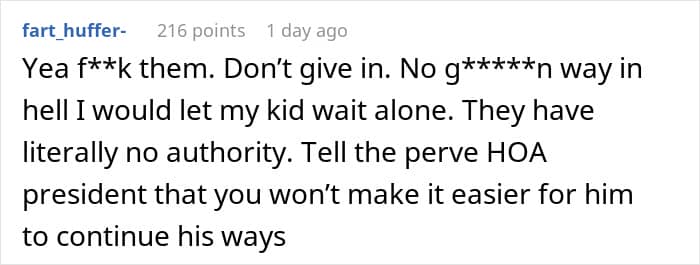 That’s why the poster decided to take a stand against his homeowners’ association. They had mentioned that people were complaining about the crowd near the bus stop, but since his house is right there, he clarified that he has never had an issue with it. He also invited the parents to his home during pick-up and drop-off times so that there would be no trouble.