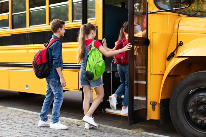 The problem with such a rule is that it can be a threat to children’s safety. The reason why most folks don’t want their kids to go to the bus stop alone or insist they go in groups is because it protects them from being preyed upon by strangers or getting bullied. Parents can also look after younger kids and keep them out of traffic.