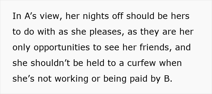 Her employer has decided bedtime isn’t just for children and believes that she too should have a curfew