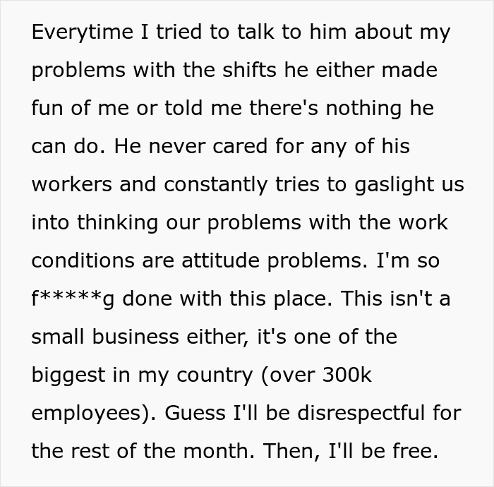 RELATED:One employee shared how his manager called him ‘disrespectful’ and mocked him for wanting better work conditions after he handed in his resignation notice